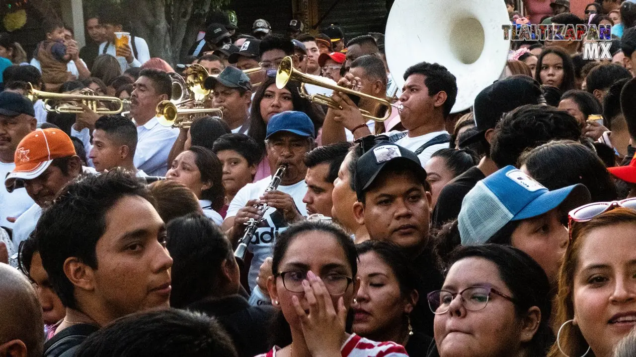 Los músicos de viento metal que hacen sonar sus instrumentos para todos aquellos que acompañan el brinco de chinelo de Tlalti en este tercer y último convite, sin duda los sones de Tlaltizapán tienen una alegría particular.