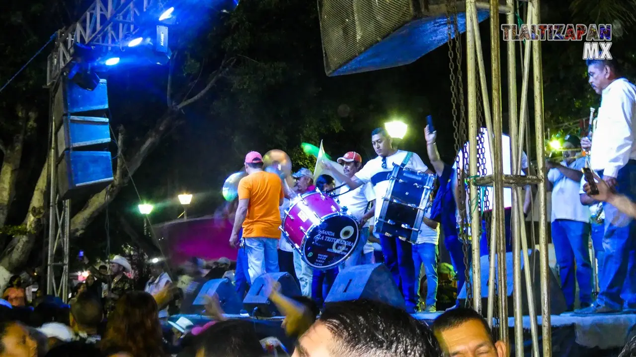 The wind band in the center of the municipality performing a last round of sounds on this Saturday night of the last treat towards the long-awaited carnival of Tlaltizapán 2023. As long as the sounds sound, people move in the carnival town of Tlaltizapán, Morelos.