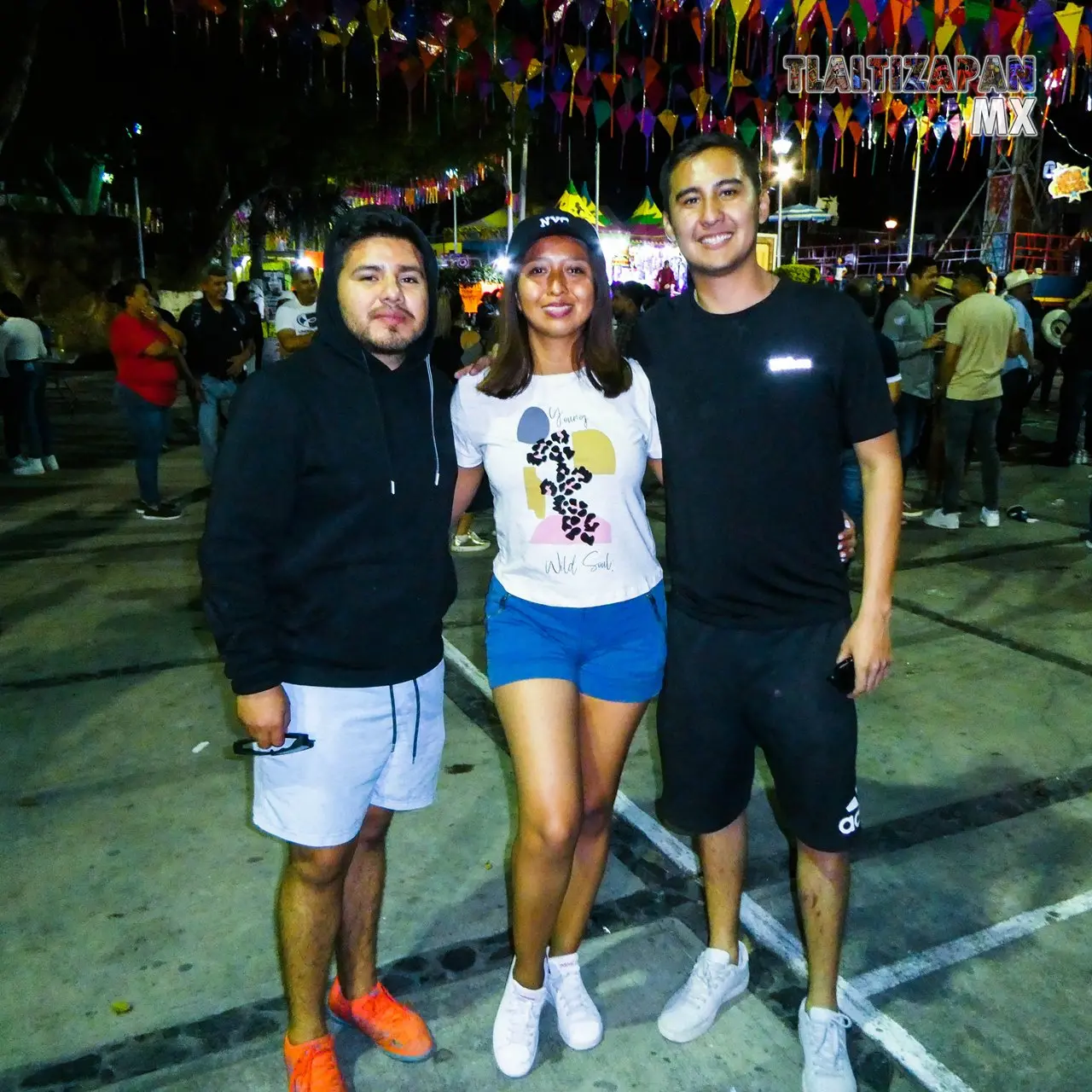 Jovenes disfrutando de la primera actividad del carnaval de Tlaltizapán 2023, acompañando a velar al mal humor el miércoles 15 de febrero en la agradable tarde noche que invita a bailar al son del chinelo en el pueblo morelense.