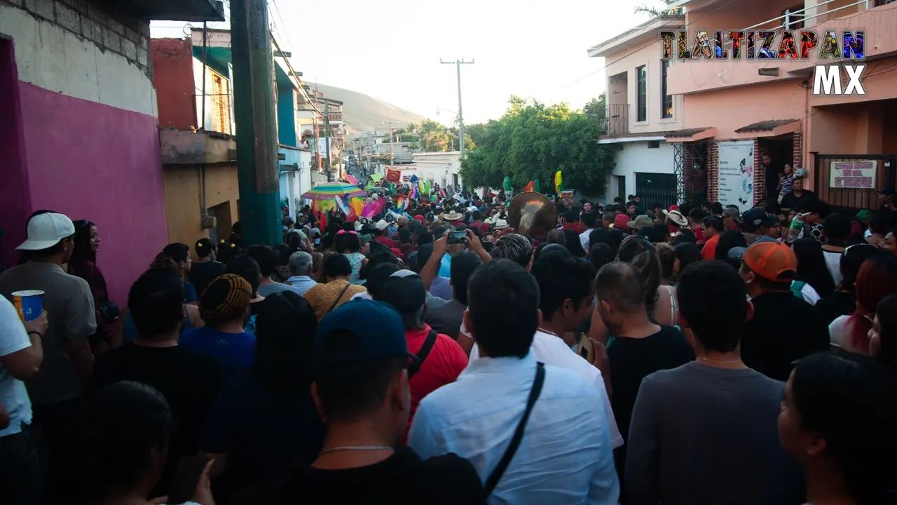 Calles llenas de gente disfrutando de un carnaval en Tlaltizapán de Zapata